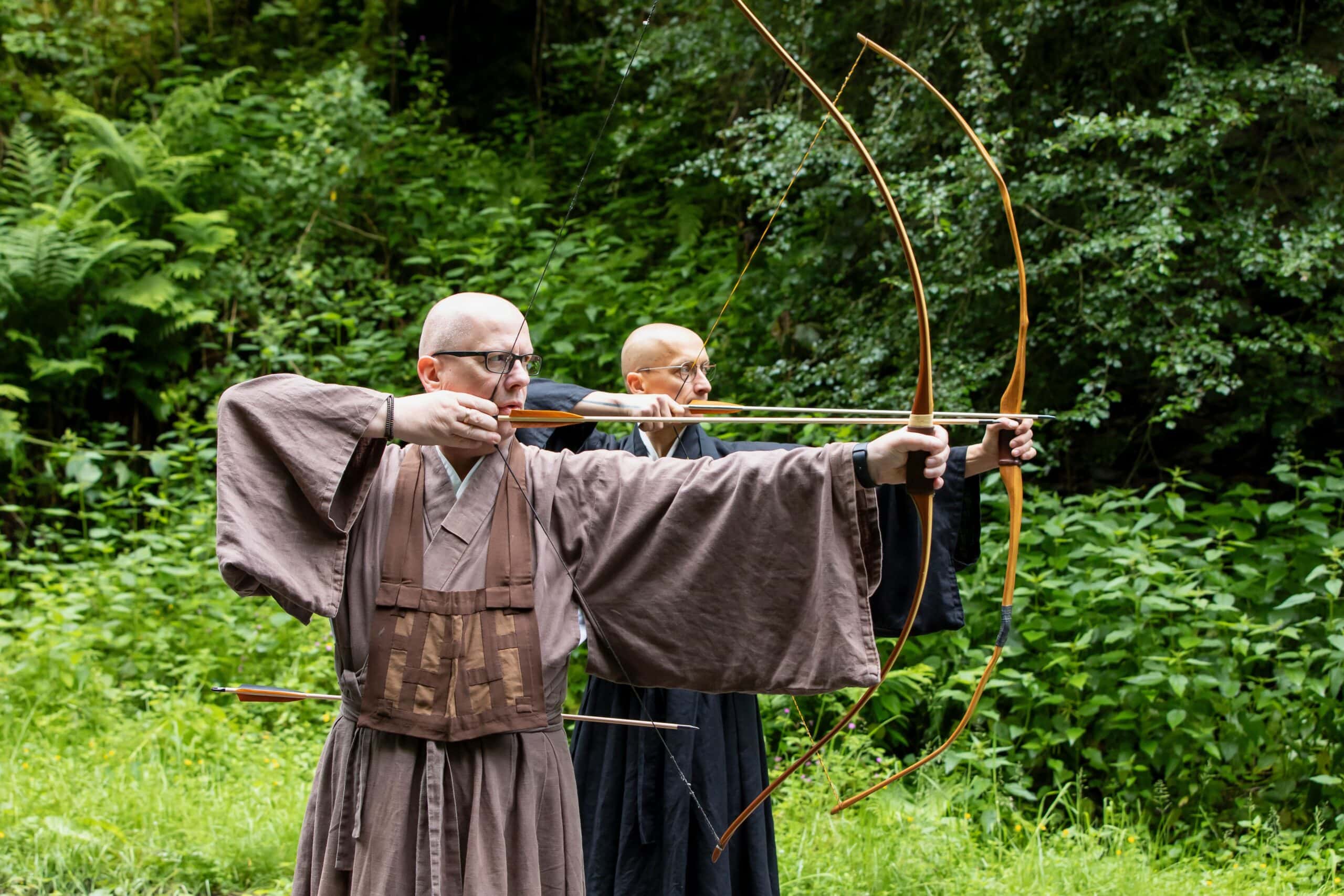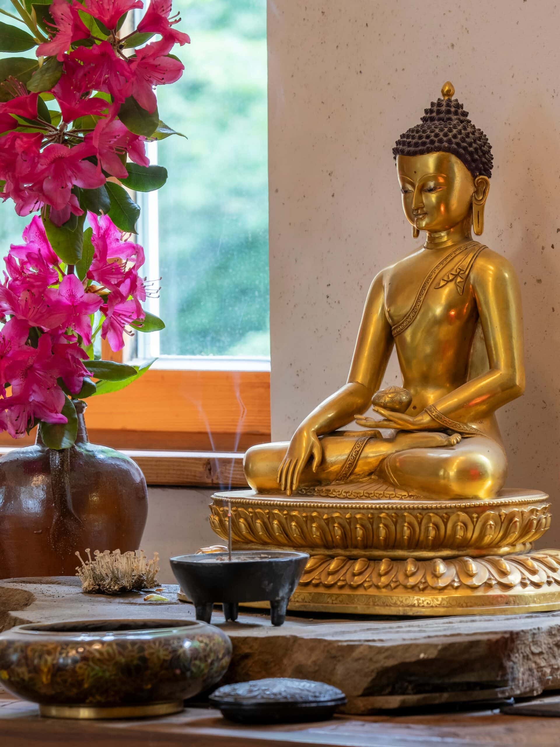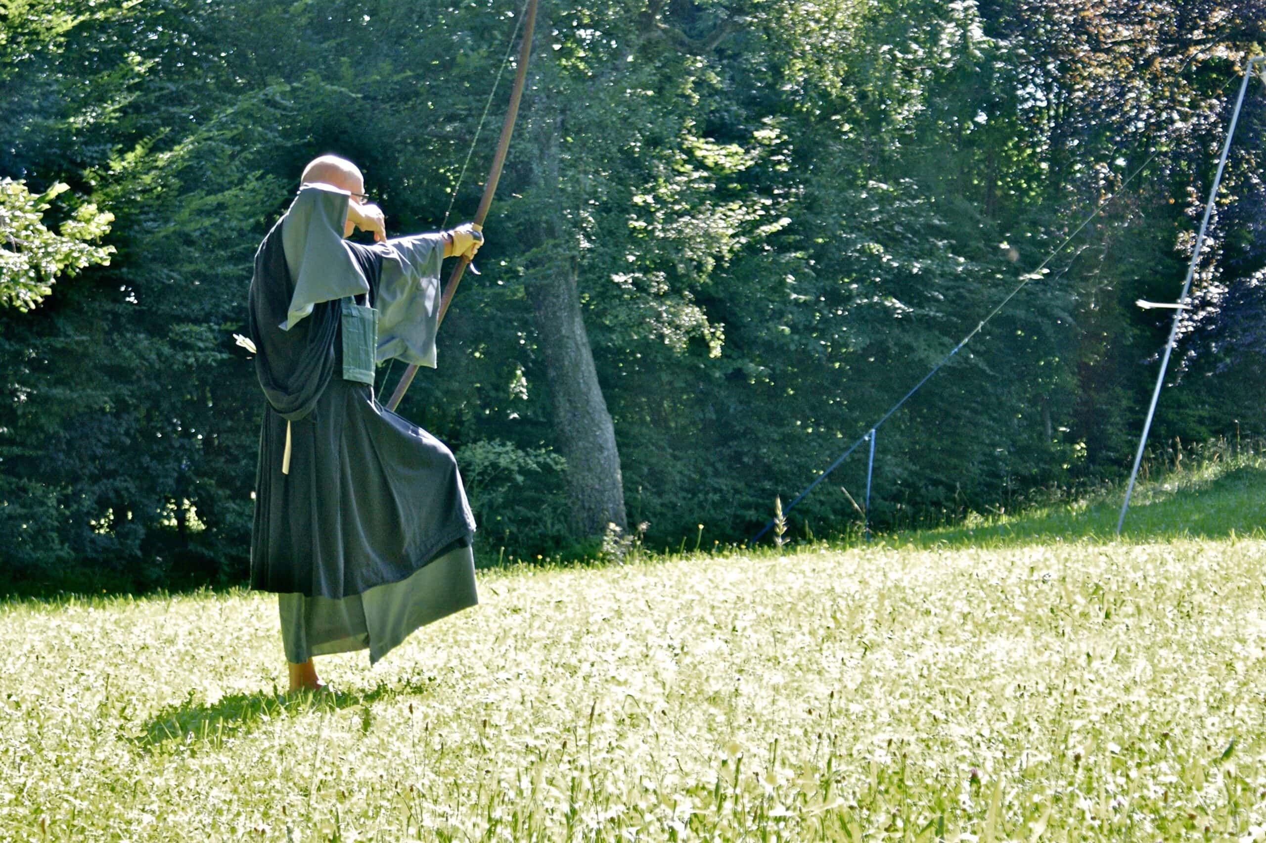 Dies beschreibt den Weg, den ein Mensch, den man „Buddha“, den Erwachten, nannte, vor etwa zweieinhalb tausend Jahren seinen Mitmenschen wies. Als diese dreifache Übung, das dreifache Studium des Weges, zu einem bloßen Studium von überlieferten Texten, von Philosophie, Ordensregel und Sutren zu verkümmern drohte, verwiesen die Gründerinnen und Gründer des Zen zurück auf den alten Weg: sie lehrten das „formlose dreifache Studium“, die Schau des eigenen, ursprünglichen Wesens, dessen Wirken alle Erscheinung ist. Dieser Geistgrund ist im Ursprung des Wirkens ohne Irrtum, ohne Täuschung, ohne Verstrickung. Das sind Weisheit, Sittlichkeit und Freiheit von der Illusion eines Ich, mit denen das eigene Wesen ursprünglich ausgestattet ist. Ausdruck und das Zentrum dieser Schau, wie wir sie üben, ist Zazen, das aufrechte Sitzen. Es ist die Erfahrung dieser Übung, die uns transformiert; die so von innerer Freiheit zu äußerer Freiheit führt – bis beides ineinander aufgeht, Übung und Übende:r eins werden.